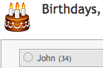 Bei Seiten mit vielen Mitgliedern fallen auch viele Geburtstage auf einen Tag. Der Seitenbetreiber kann daher einstellen, dass Geburtstage ab einer bestimmten Anzahl pro Tag gruppiert dargestellt werden sollen. Wenn diese Gruppierung eingestellt wurde, enthält Ihr Kalender nur einen Termin mit dem Titel "Geburtstage" pro Tag. Hinter dem Titel finden Sie die Anzahl der Geburtstage an diesem Tag in Klammern. Klicken Sie auf diesen Termin, kommen Sie zu einer detaillierten Auflistung aller Mitglieder, die an diesem Tag Geburtstag feiern. Sie können auch – wie auf der Monats- oder Wochenansicht – zu einem bestimmten Datum springen.